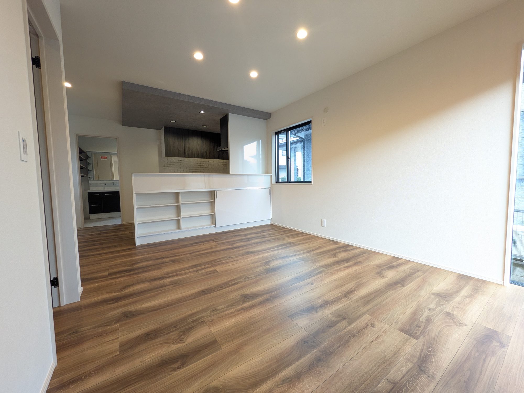明るいLDKは開放感があり、家族団らんの時間を心地よく演出します。